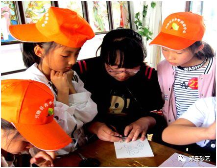 鄭氏砂藝工作人員為同學(xué)們介紹砂畫(huà)