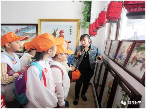 活動(dòng)中,一百多名師生參觀了體驗(yàn)館,鄭氏砂藝的工作人員為師生們?cè)敿?xì)介紹了砂藝畫(huà)的歷史和文化發(fā)展,同時(shí)針對(duì)部分作品主題和制作過(guò)程做了注釋性介紹。