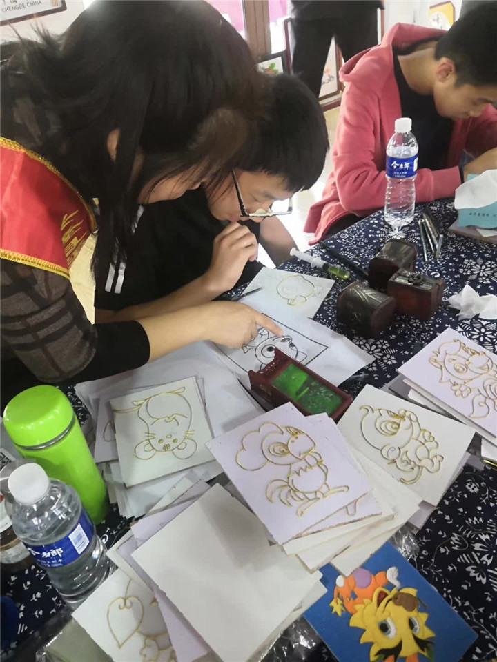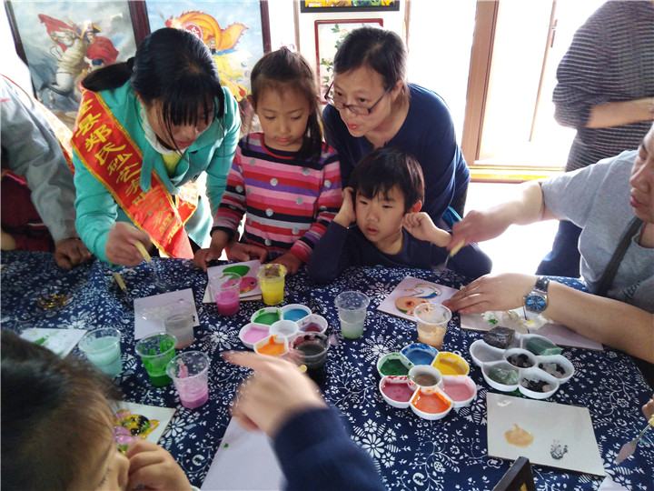 圖為鄭氏砂藝?yán)蠋熤笇?dǎo)體驗(yàn)學(xué)生作畫(huà)