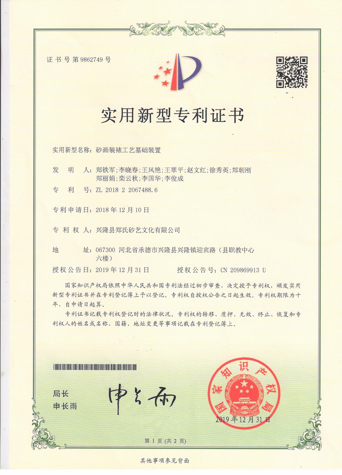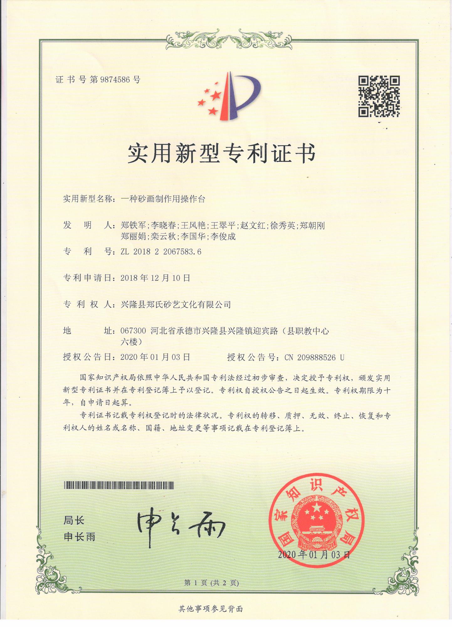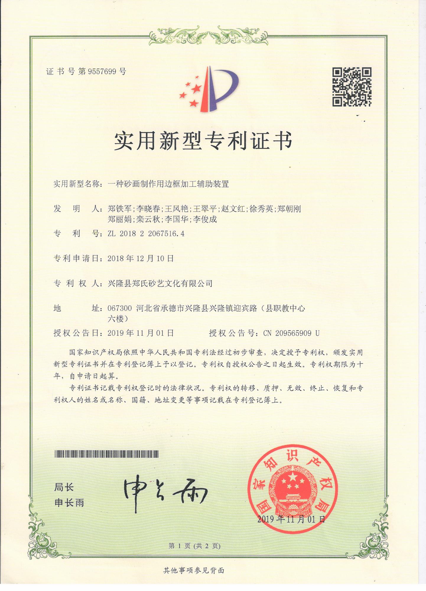 自鄭氏砂藝研究所成立以來(lái),經(jīng)過(guò)研發(fā)人員的不懈鉆研和努力,已經(jīng)陸續(xù)研發(fā)和申報(bào)了9項(xiàng)擁有自主知識(shí)產(chǎn)權(quán)的實(shí)用新型專利,目前為止9項(xiàng)專利全部獲得國(guó)家知識(shí)產(chǎn)權(quán)局的認(rèn)定。近年來(lái),公司根據(jù)自身的生產(chǎn)需求,積極成立了鄭氏砂藝研究所并獲得省工業(yè)和信息化廳批準(zhǔn),在研發(fā)過(guò)程中,公司先后投入數(shù)十萬(wàn)元,通過(guò)研發(fā)破解了生產(chǎn)過(guò)程中的技術(shù)難題,9項(xiàng)自主研發(fā)專利的成功也標(biāo)志著鄭氏砂藝研究所逐步走向成熟。
