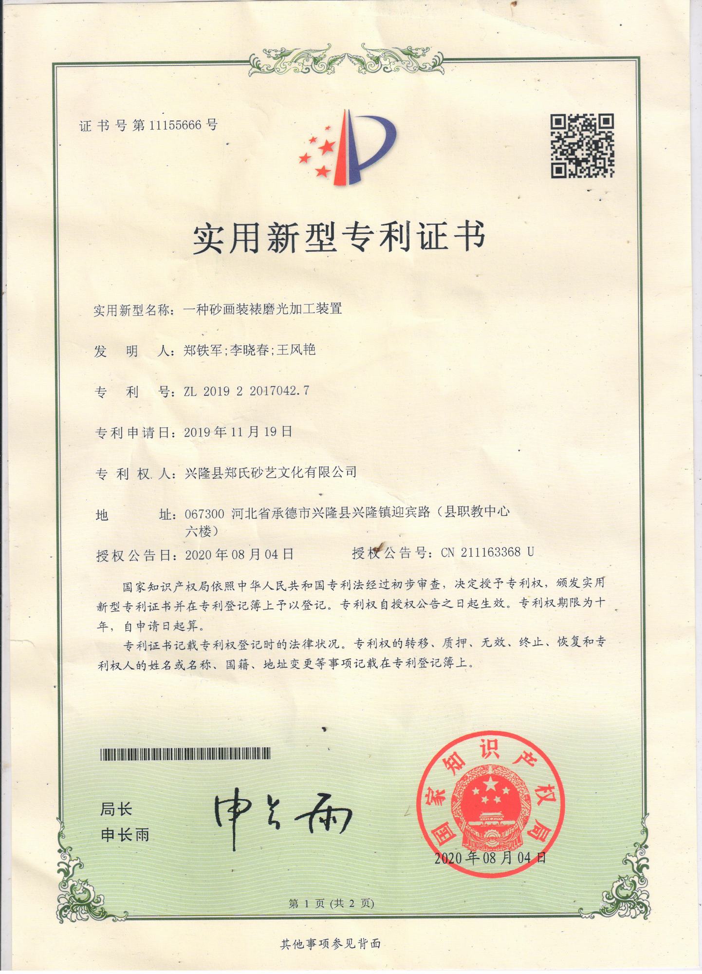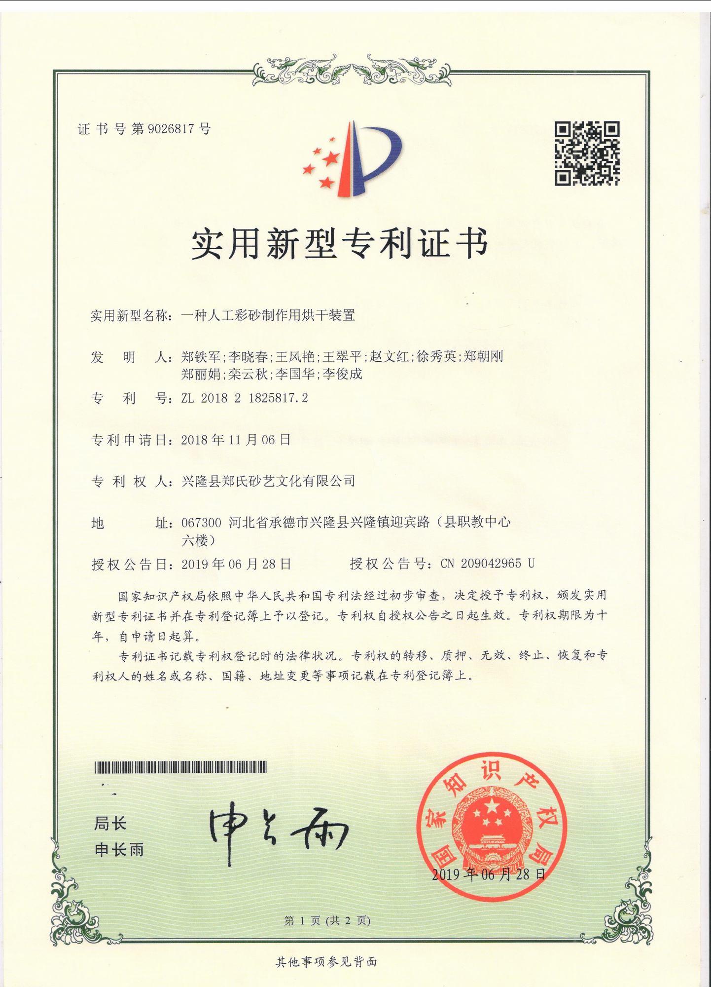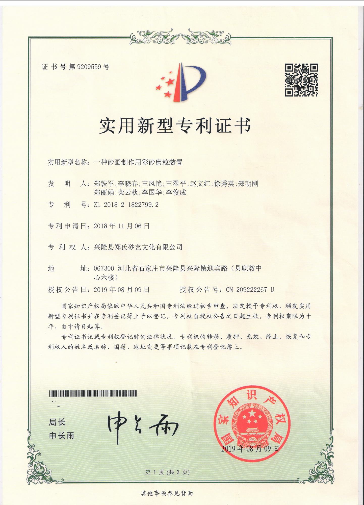 自鄭氏砂藝研究所成立以來(lái),經(jīng)過(guò)研發(fā)人員的不懈鉆研和努力,已經(jīng)陸續(xù)研發(fā)和申報(bào)了9項(xiàng)擁有自主知識(shí)產(chǎn)權(quán)的實(shí)用新型專利,目前為止9項(xiàng)專利全部獲得國(guó)家知識(shí)產(chǎn)權(quán)局的認(rèn)定。近年來(lái),公司根據(jù)自身的生產(chǎn)需求,積極成立了鄭氏砂藝研究所并獲得省工業(yè)和信息化廳批準(zhǔn),在研發(fā)過(guò)程中,公司先后投入數(shù)十萬(wàn)元,通過(guò)研發(fā)破解了生產(chǎn)過(guò)程中的技術(shù)難題,9項(xiàng)自主研發(fā)專利的成功也標(biāo)志著鄭氏砂藝研究所逐步走向成熟。