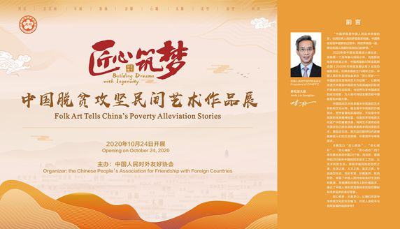 由中國人民對外友好協(xié)會主辦的“匠心筑夢—中國脫貧攻堅民間藝術(shù)作品展”于10月24日(聯(lián)合國日)正式開幕。中國人民對外友好協(xié)會會長林松添大使題寫前言,聯(lián)合國代理駐華協(xié)調(diào)員桑愛玲女士向展覽發(fā)來賀詞。