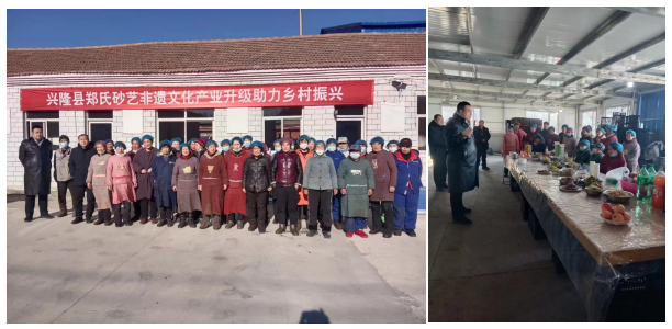 2021年11月,企業(yè)選址興隆縣李家營下臺子村原小學(xué)成立興隆縣鐵金研學(xué)基地,并結(jié)合當(dāng)?shù)剞r(nóng)村農(nóng)民的農(nóng)業(yè)種植情況,組織當(dāng)?shù)?03戶村民自愿聯(lián)合成立了農(nóng)民專業(yè)合作社,建立了鄭氏砂藝非遺文化產(chǎn)業(yè)升級助力鄉(xiāng)村振興就業(yè)工坊。在企業(yè)的引領(lǐng)下合作社展開了農(nóng)產(chǎn)品收購和初加工業(yè)務(wù),此舉不但解決了農(nóng)民的就業(yè)問題,也解決了農(nóng)產(chǎn)品的銷售問題,切實(shí)的帶動了當(dāng)?shù)厝罕娋徒蜆I(yè)、增收致富。