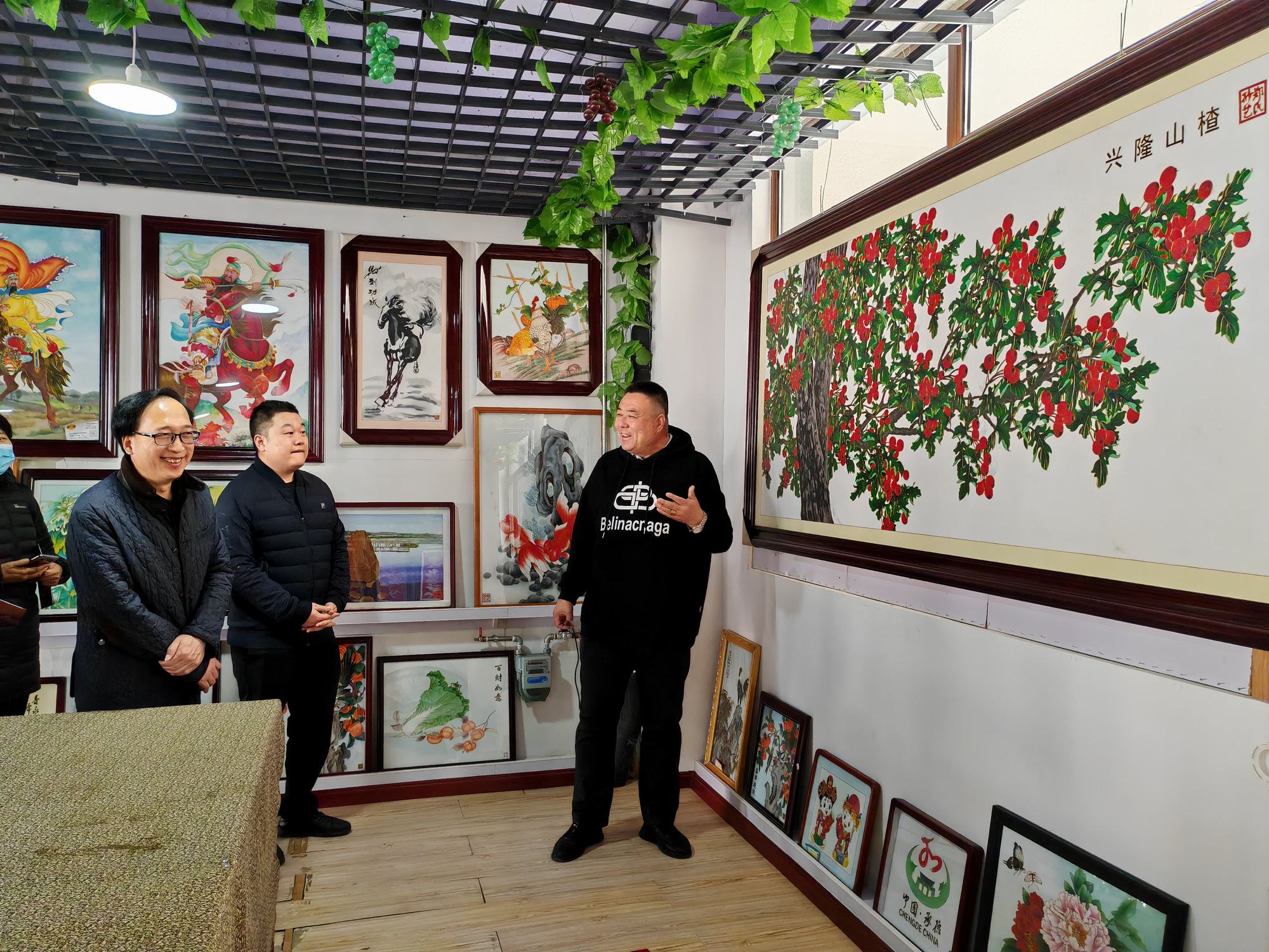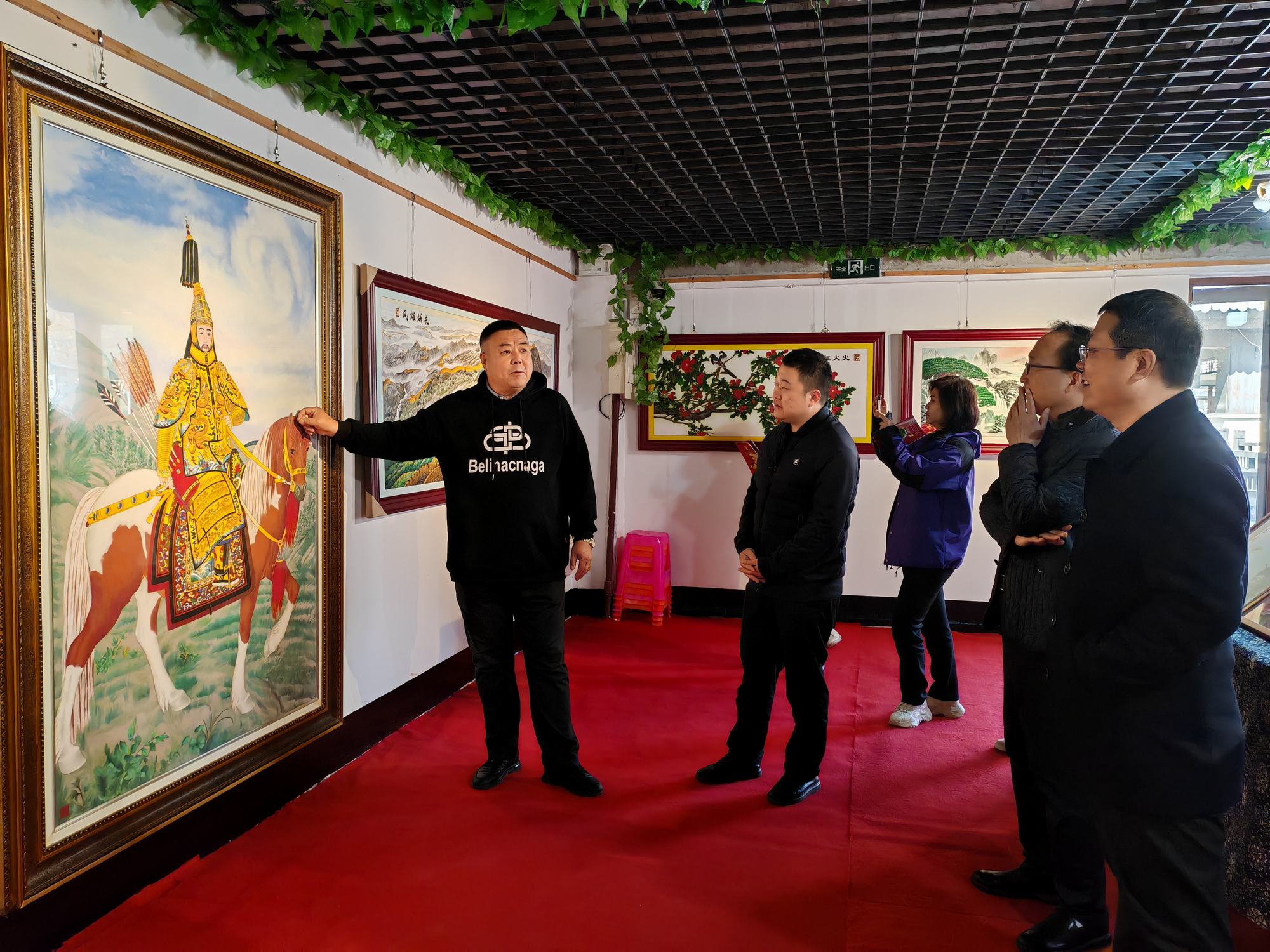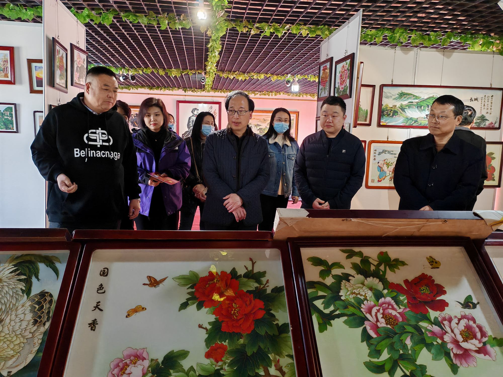 集乾釗主任一行在鄭鐵軍董事長的陪同下參觀了鄭氏砂藝非遺展館,觀看了鄭氏砂藝創(chuàng)作的各類非遺砂畫作品,考察團(tuán)領(lǐng)導(dǎo)在長城砂畫系列前駐足欣賞,對栩栩如生的長城砂畫作品給予了高度贊譽(yù)。期間董事長鄭鐵軍對近年來鄭氏砂藝非遺文化的發(fā)展情況進(jìn)行了簡單介紹。集乾釗主任對鄭氏砂藝非遺文化的傳承和發(fā)展表示了充分肯定,并對鄭氏砂藝的傳統(tǒng)手工技藝給予高度評(píng)價(jià)。