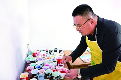 ■鄭鐵軍調(diào)制砂畫中的各色砂石原料