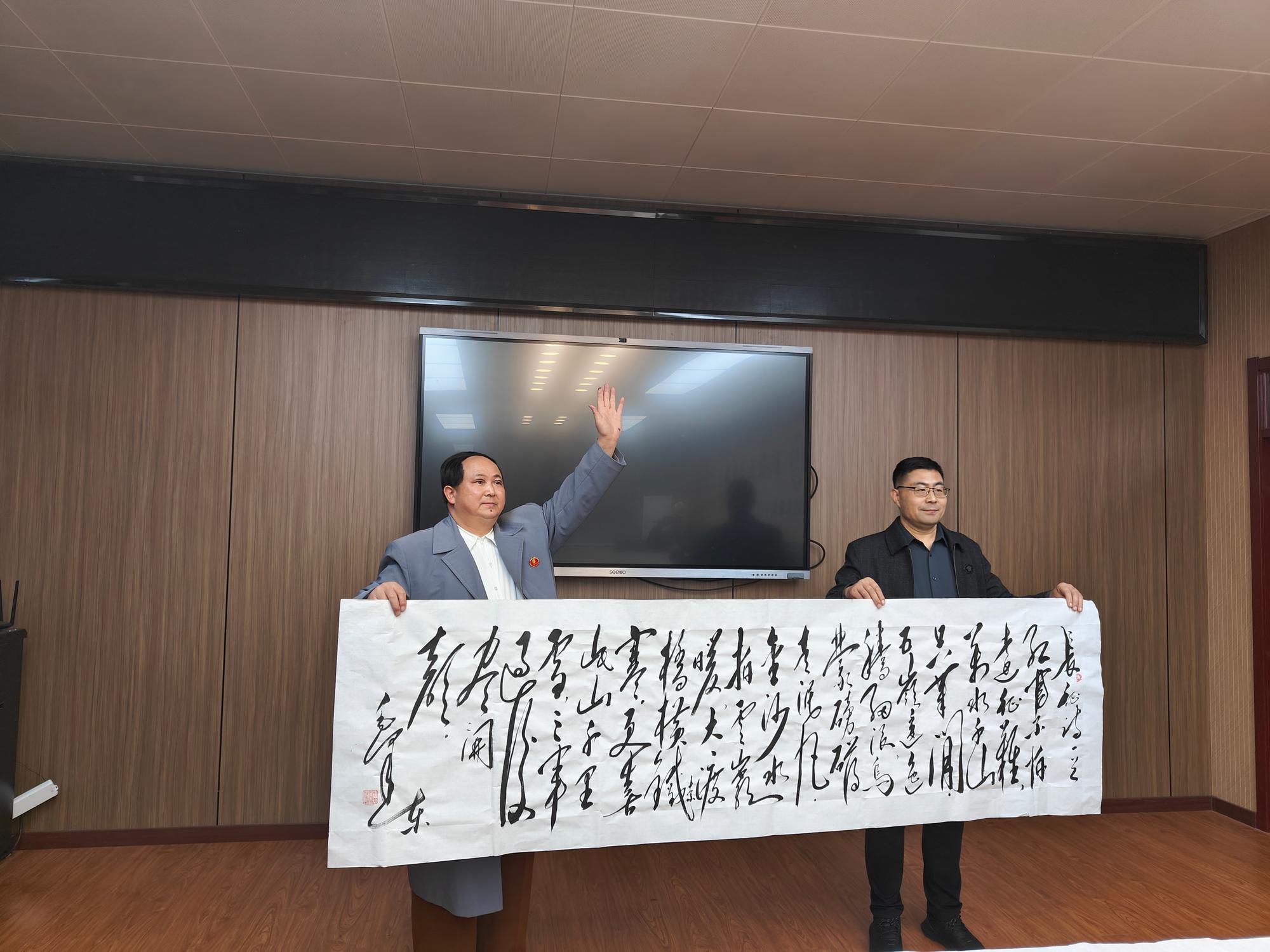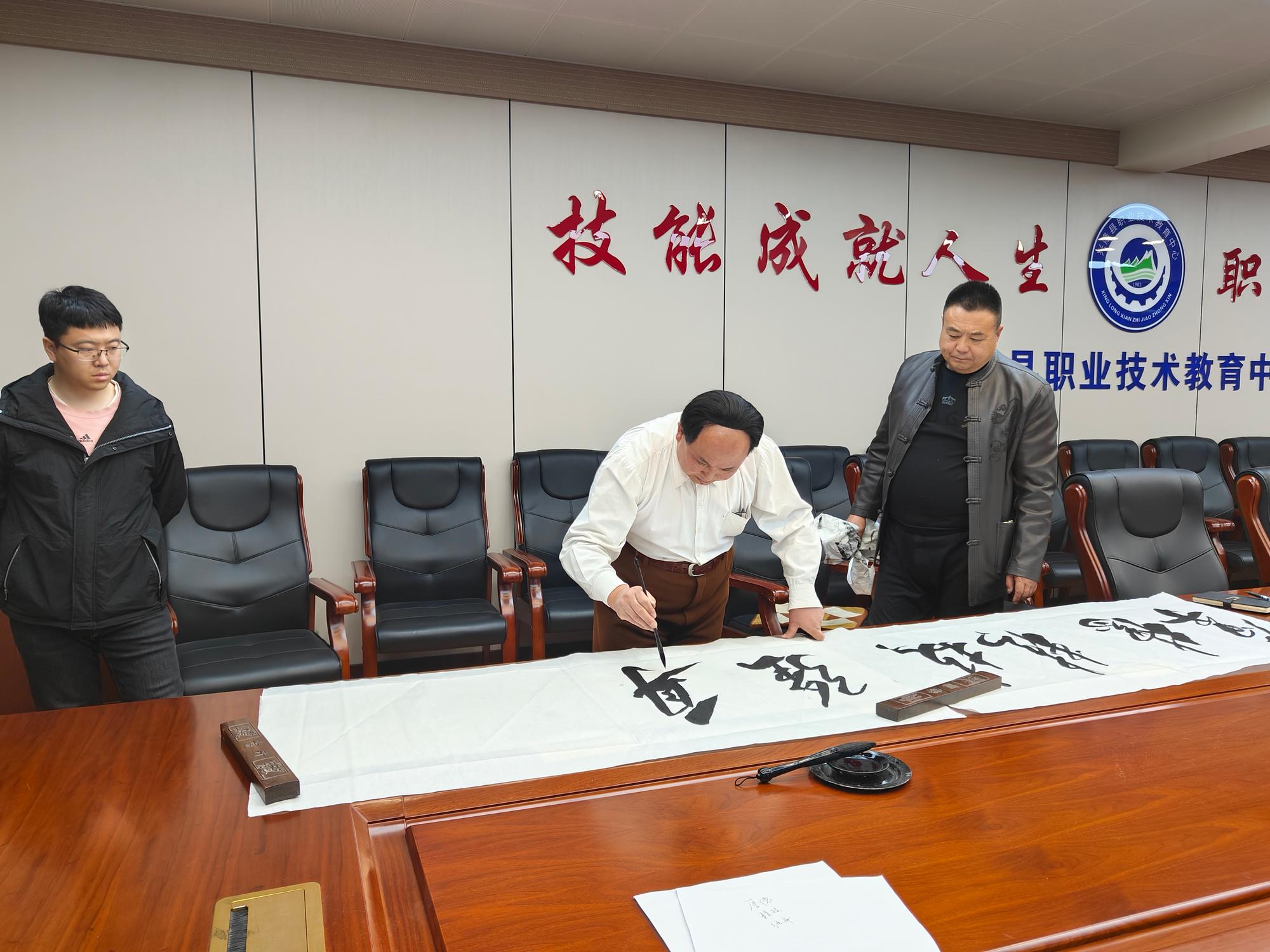 隨后,趙士奎老師移步至學(xué)校書法室,應(yīng)校領(lǐng)導(dǎo)的誠摯邀請,現(xiàn)場揮毫,為興隆縣職業(yè)教育中心題寫了校訓(xùn),即《厚德、精技、強身》。并書寫了詩詞《長征》,此作品不僅向偉人致敬,更激勵著廣大師生傳承和發(fā)揚長征精神,為實現(xiàn)中華民族偉大復(fù)興的中國夢不懈奮斗。