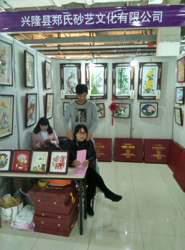2015年10月16日--10月18日,興隆縣鄭氏砂藝文化有限公司參加了由河北省文化廳承辦的第四屆河北省特色文化產(chǎn)品博覽交易會(huì),地點(diǎn):石家莊樂(lè)城.國(guó)際貿(mào)易城,公司的砂畫(huà)產(chǎn)品在展會(huì)上受到廣大顧客的青睞。